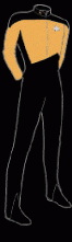 At the Academy, Kye majored in Law and Minored in Counseling, which he uses in his cases. He is rated as "Delta leel Counselor," meaning while he can't become a ship's full fledged counselor, he can take over if the need arises and he can assist the current counselor as needed. Dellan Kye was stationed on Earth for a year for internship at the JAG Headquarters. Then, during a visit to Bajor, the current JAG officer was killed and so he replaced him as the acting JAG officer on board Deep Space Nine and was also made acting Counselor until the new one arrived. Has returned to Earth and is now a full fledged JAG officer and is waiting his first full assignment. |